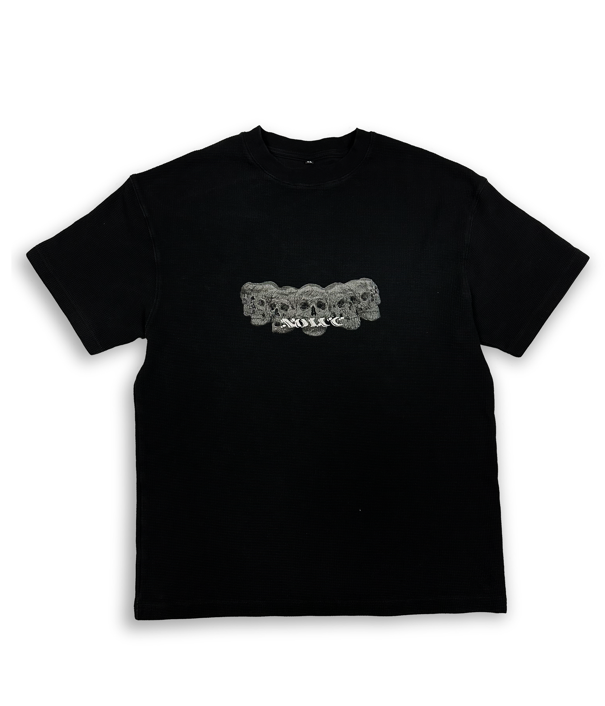 Design: Frontal skull print featuring a No Luc logo bottom center. Small logo symbol printed at the upper back.