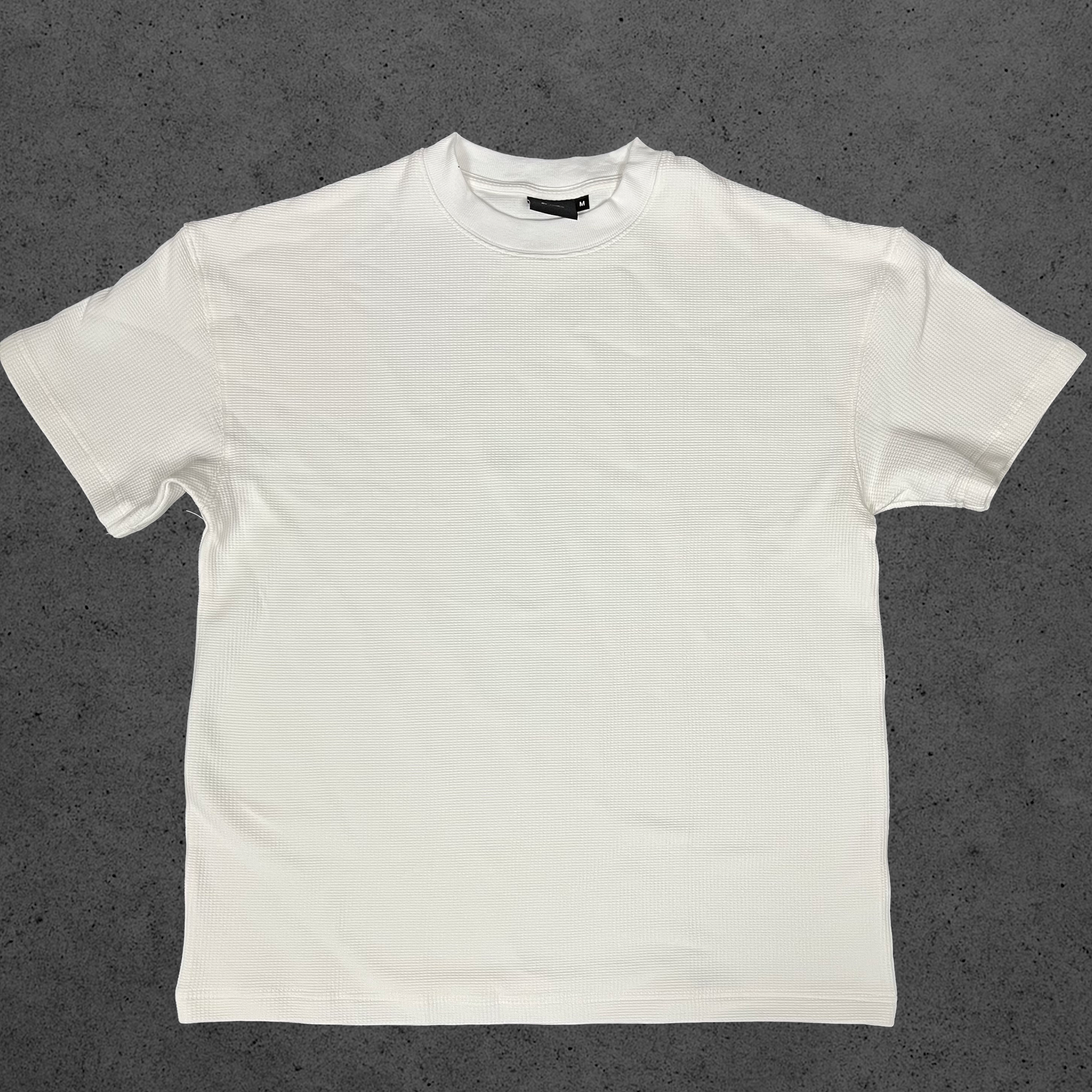 Material: White 100% cotton waffle knit; mid-weight with a textured feel.